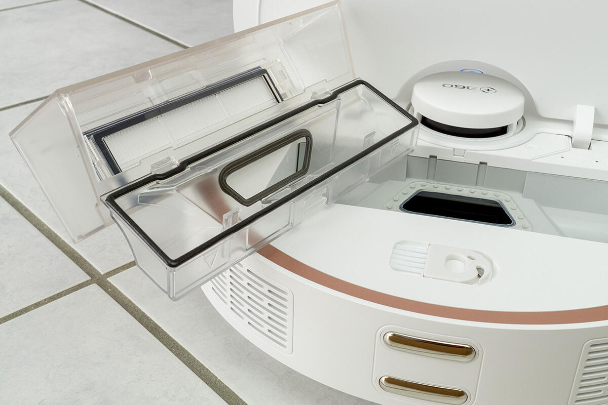 Im Vergleich zu den 5200 mAh des Roborock S6 ist der Energiespeicher des 360 S7 (3200 mAh) dennoch deutlich kleiner dimensioniert. Die Kapazität des Staubbehälter ist mit 570 ml hingegen gut 20% größer als die des Kontrahenten.