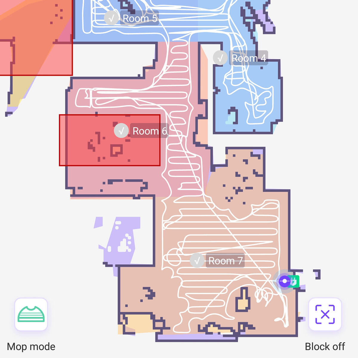 Möchte man die Stühle nicht bei jedem Saugvorgang hochstellen oder aus dem Weg räumen, kann man an der entsprechenden Stelle, wie bereits erwähnt, kurzerhand eine Block-Off-Area definieren. Die lassen sich nämlich relativ unkompliziert erstellen und wieder löschen.