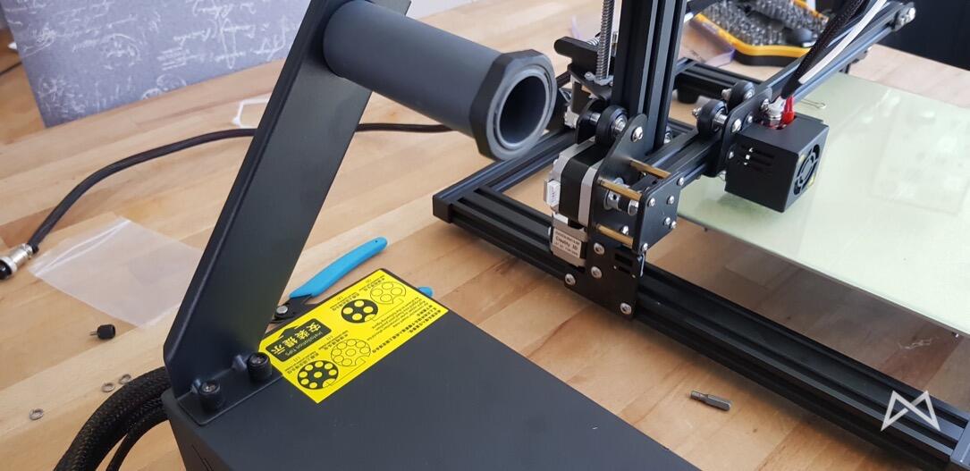 Ebenfalls ein Vorteil dieses Druckers ist die an der Steuerungs-Einheit angebrachte Filament-Halterung. Keine extra zusammengebaute, wackelige Geschichte, sondern direkt neben dem Drucker.
