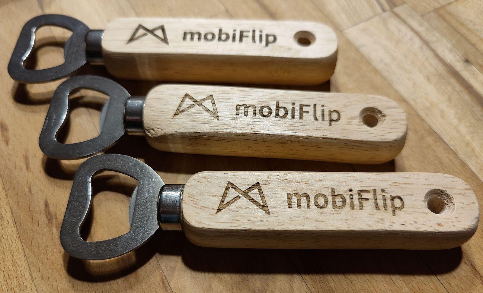 Zum einen hatte ich noch ein paar Kapselheber über und habe dort mit dem Lasermaster 15W noch das MobiFlip-Logo reingebrutzelt. Das geht recht schnell, da hier ja nur graviert wird und somit der Laser zum einen schnell und mit wenig Power über das Material huschen kann.