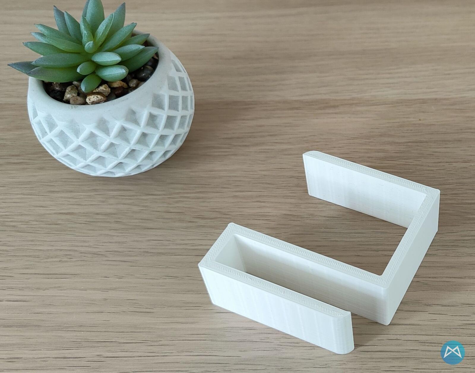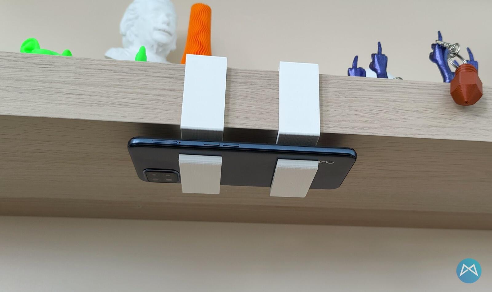 Der dicke Teil, wird dann einfach auf das Regal aufgeschoben und in den schmalen Teil (1,5 cm dick) wird das Handy gelegt. Um ein wenig Variabel zu bleiben habe ich die Halterung auf 2mal und lediglich 3 cm breit gedruckt. So passen auch größere Smartphones rein.