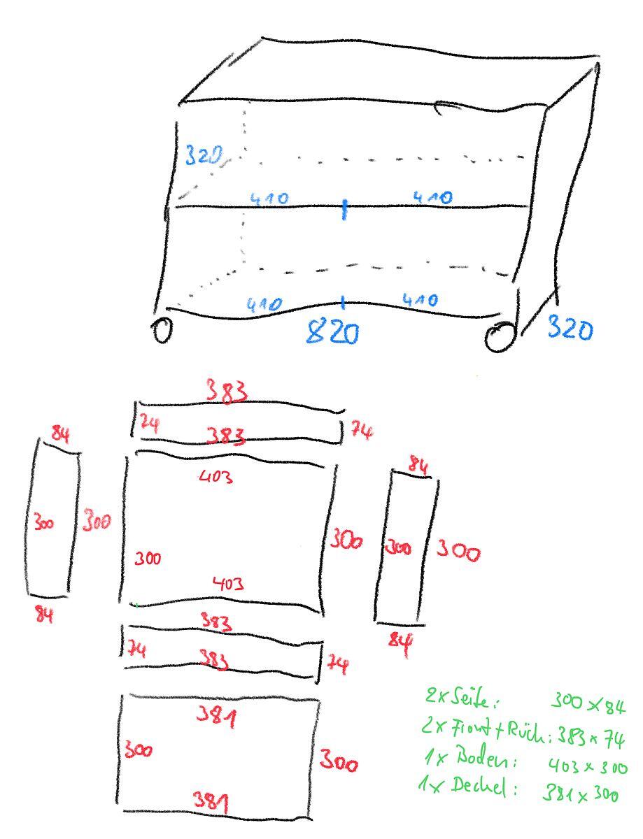 Also habe ich das Video selbstverständlich weggeklickt und kam dann wenige Sekunden später aber doch ins Grübeln. Die Boxen würden sich zum einen prima an mein Schränkchen (Mietwohnung) anpassen lassen und man muss ja nicht jedes Fach im Inneren der Kisten aus Plastik drucken, sondern könnte auch diverse Holzstücke zurechtschneiden.