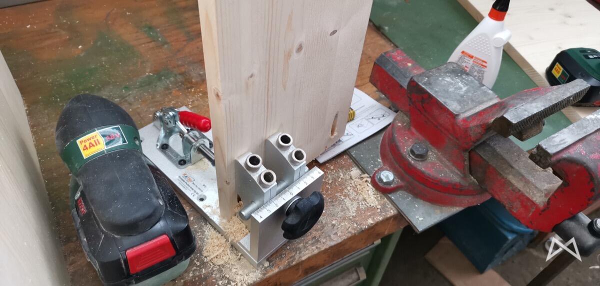 Am Ende wird nun der fertige Schrank eben nur eine Tür oben bekommen und die lasse ich mir online aus Plexiglas zuschneiden. Der Rest hat dann sogar prima geklappt. Inklusive der Pocket-Holes (super einfaches System!) und dem Schubladenauszug. Beides hatte ich vorher noch nie gemacht, aber mit ein bisschen Geduld bekommt man das einfach hin.