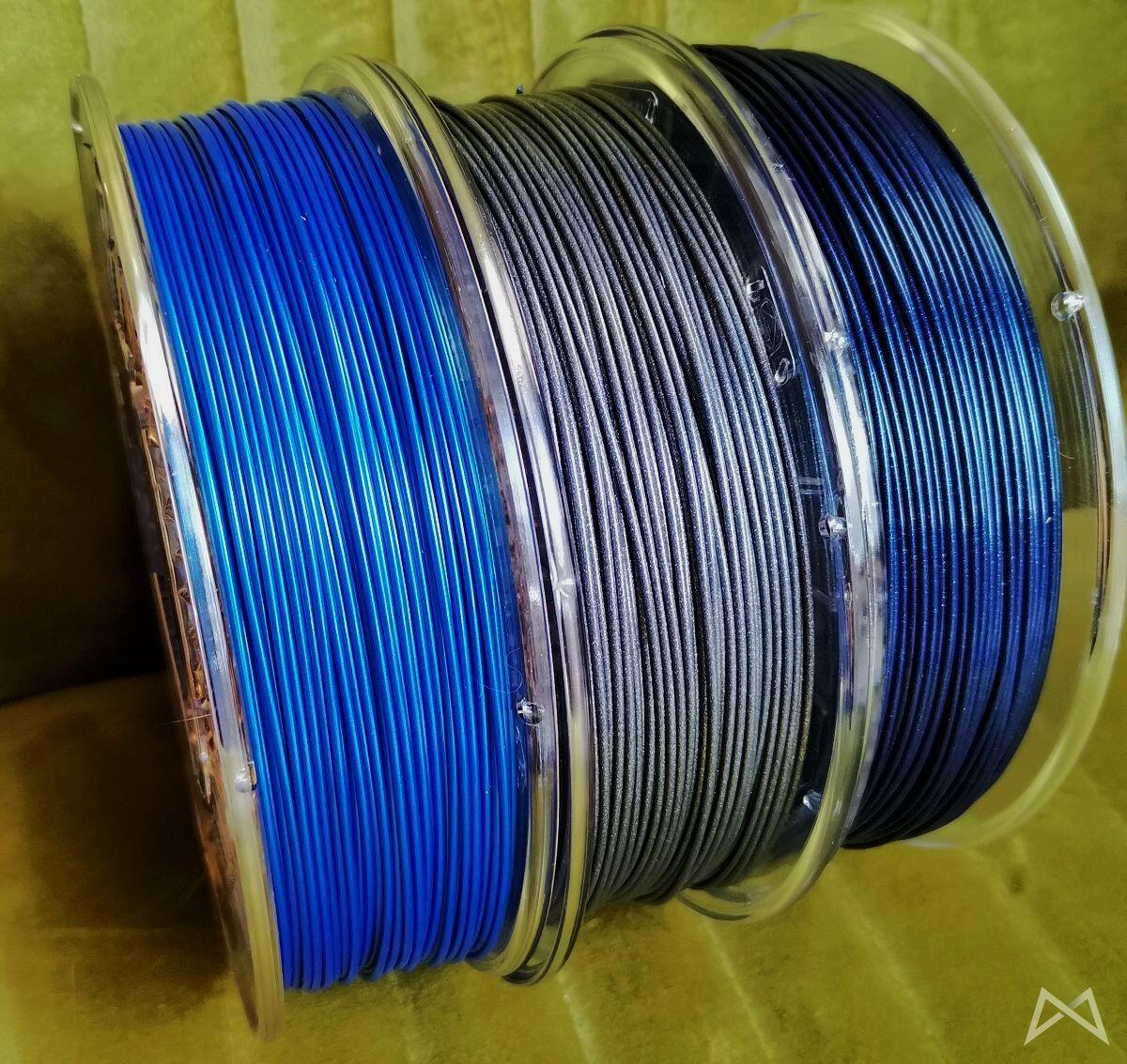 Ebenfalls von JacksFilament ist noch eine Rolle Noble Blue (schimmert blau wie Metallic Lack) und Fillamentum Vertigo Starlight (dunkelblau mit hellen Punkten wie bei einem Sternenhimmel) gekommen. Auch die beiden werden in den kommenden Tagen in schöne 3D-Objekte verwandelt werden.