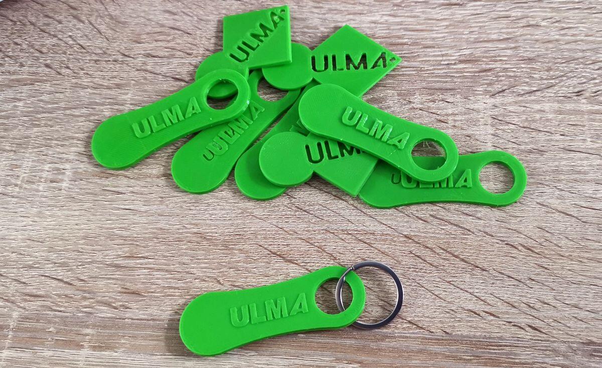 Nachdem ich gerade so schön in Fahrt war und Merchandise gedruckt hatte, wollte ich auch für meinen Hauptarbeitgeber noch eine kleine Einkaufswagenhilfe drucken. Auch hier sollte, wenn möglich das Logo darauf (ein Viereck inkl. ULMA-Schriftzug) und natürlich am Ende leicht druckbar sein, damit auch mehrere Modelle nicht unnötig viel Zeit benötigen etc.
