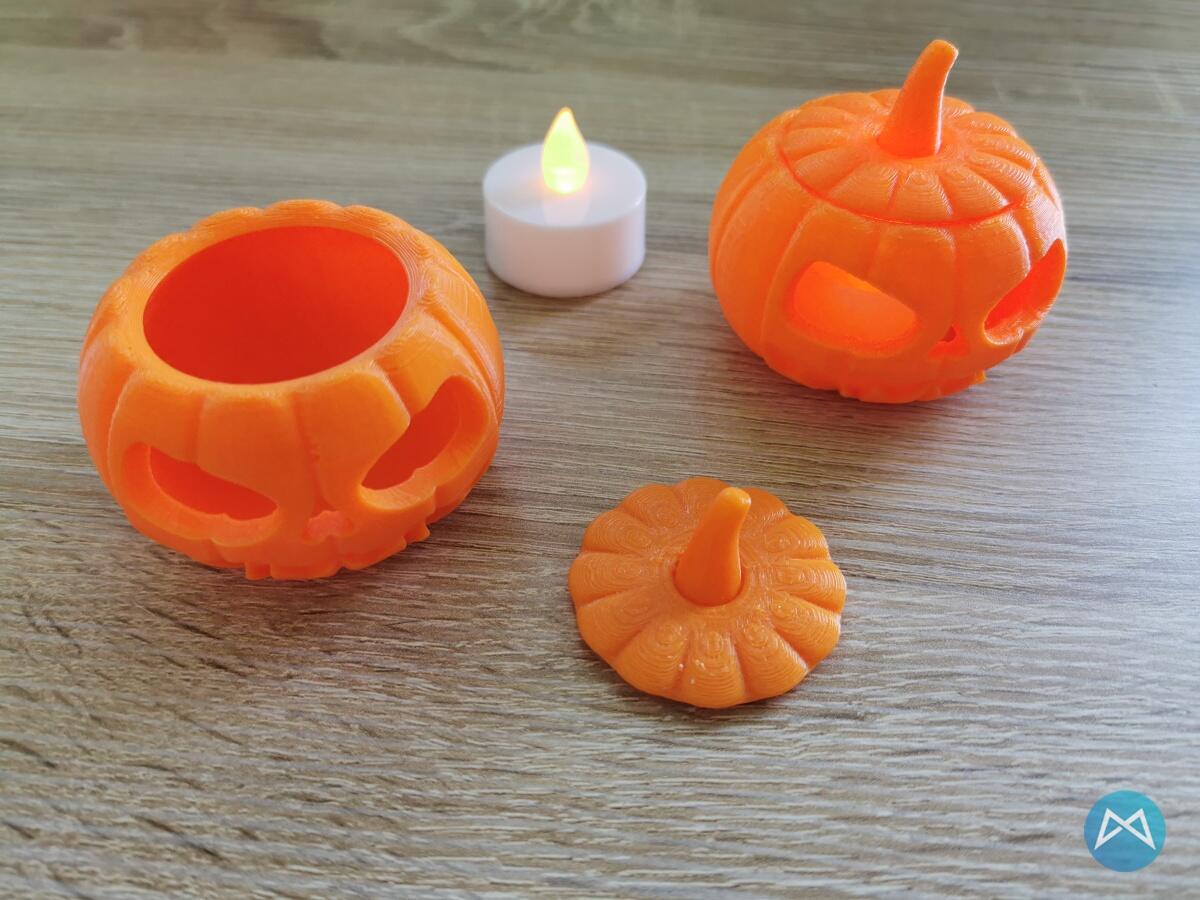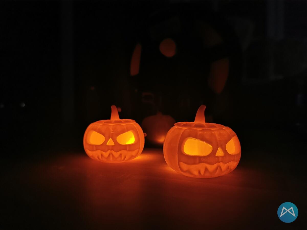 Auch mit (oder dank?) nur 20 Prozent Infill leuchten die Kürbisse bei Dunkelheit gar wunderhübsch. Mir gefällt es! Die Herzallerliebste meinte gleich, dass jetzt noch ein größerer gedruckt werden muss. *puh* Filament ist ja noch ordentlich was über…
