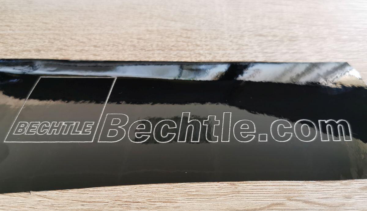Zu sehen ist einmal der Schriftzug inkl. orig. Material und einmal der ausgelöste Schriftzug inkl. Trägermaterial zum Übertragen auf ein Objekt. BTW: Natürlich ist mir klar, dass man solche Etiketten auch für nen Apfel & ein Ei bei irgendwelchen Online-Shops bekommt. Aber es ist doch nett zu wissen, dass man den Sticker auch selbst herstellen kann.
