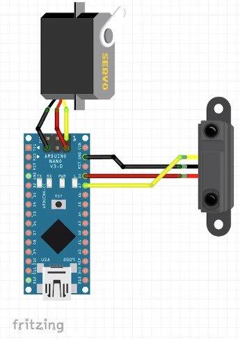 Der Servo und der Abstandsmesser müssen noch jeweils mit 3 Kabeln am Arduino Nano angeschlossen werden. Das ist eigentlich ganz einfach. Es sei denn man ist so schlau, wie meine Wenigkeit. Dazu gleich mehr…