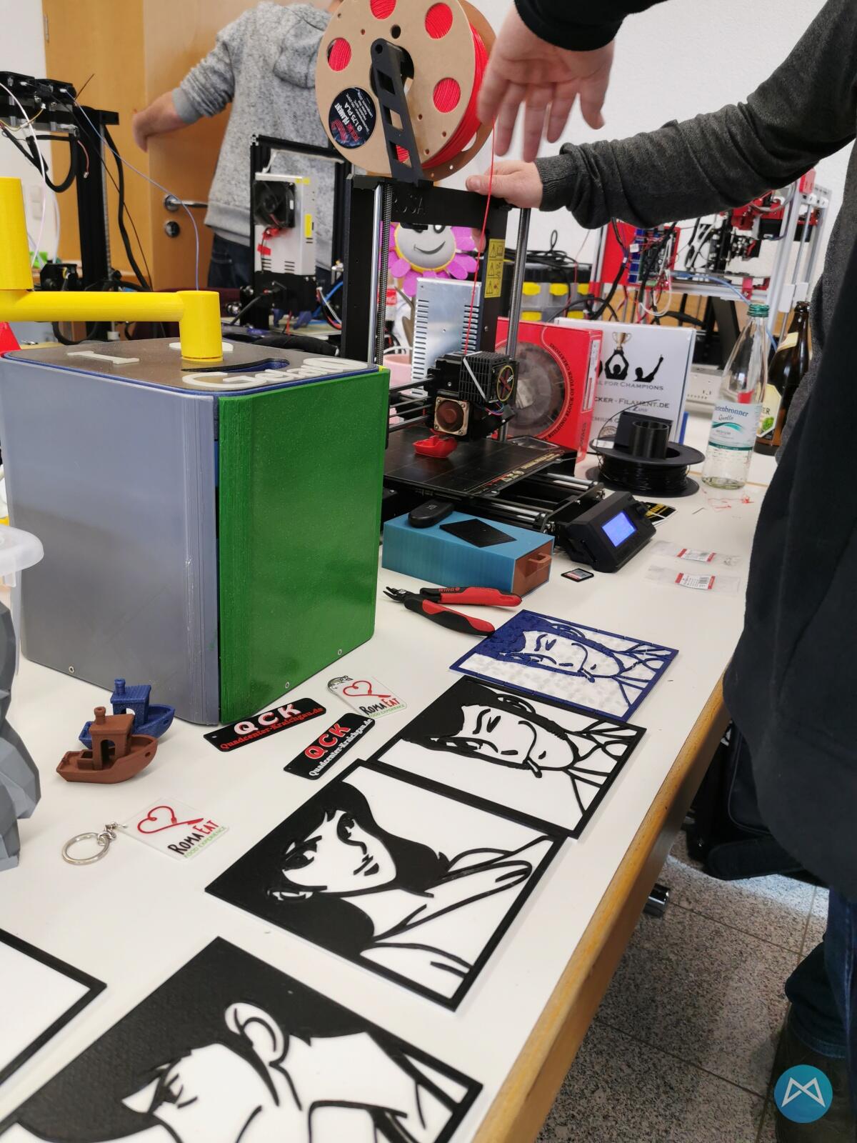 Am Ende erinnerte mich das alles an LAN-Partys, die der eine oder andere vielleicht auch miterlebt hat. Es war auf jeden Fall sehr interessant auch mal andere 3D-Drucker, dieselben Probleme bei 3farbigem Druck (3in1Out) usw. in Aktion zu sehen.