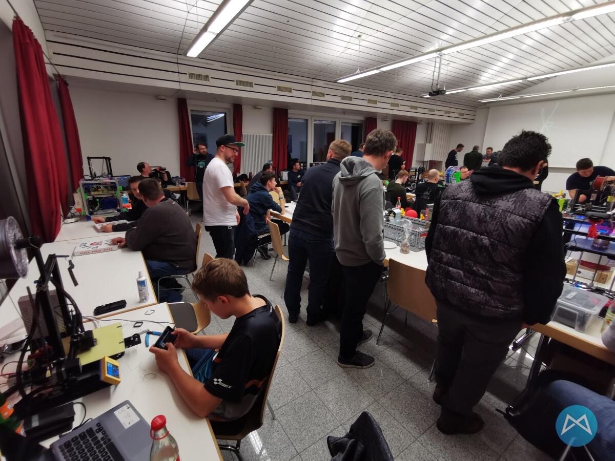 Teilweise aus über 600 km Entfernung, teils mit, teils ohne Drucker angereist und natürlich waren auch zwei bis drei Sponsoren und Filament-Shops etc. vor Ort. Es sollte ein schöner Samstag (10 Uhr ging es offiziell los) bis grob gegen Mitternacht werden.