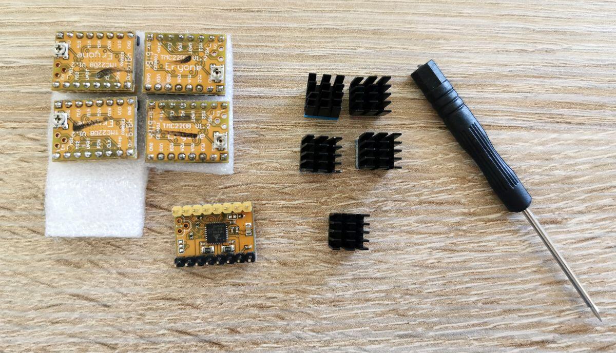 Die Treiber sind mittlerweile eingetroffen. Es handelt sich um TMC2208 V1.2 Treiber. Ich habe speziell die herausgesucht, weil ich nicht mit einer angepassten Firmware arbeiten wollte, wie es bei den 3.0ern empfohlen (notwendig?) ist.
