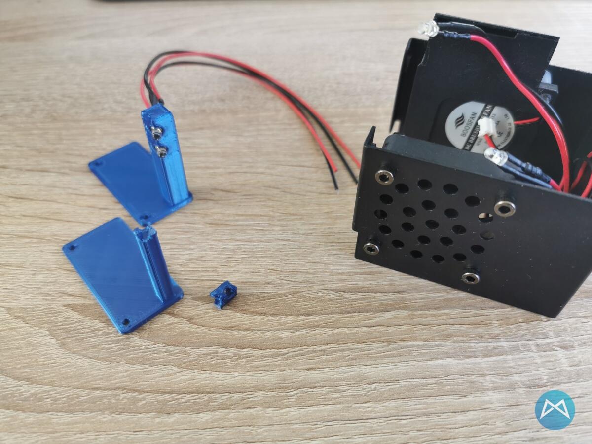 Das Ergebnis gefällt mir sehr gut. Der komplette Raum kann im Grunde dunkel bleiben, aber man sieht trotzdem den Druck, sobald die Temperatur des Hotends über 60 Grad steigt und der Lüfter anspringt.
