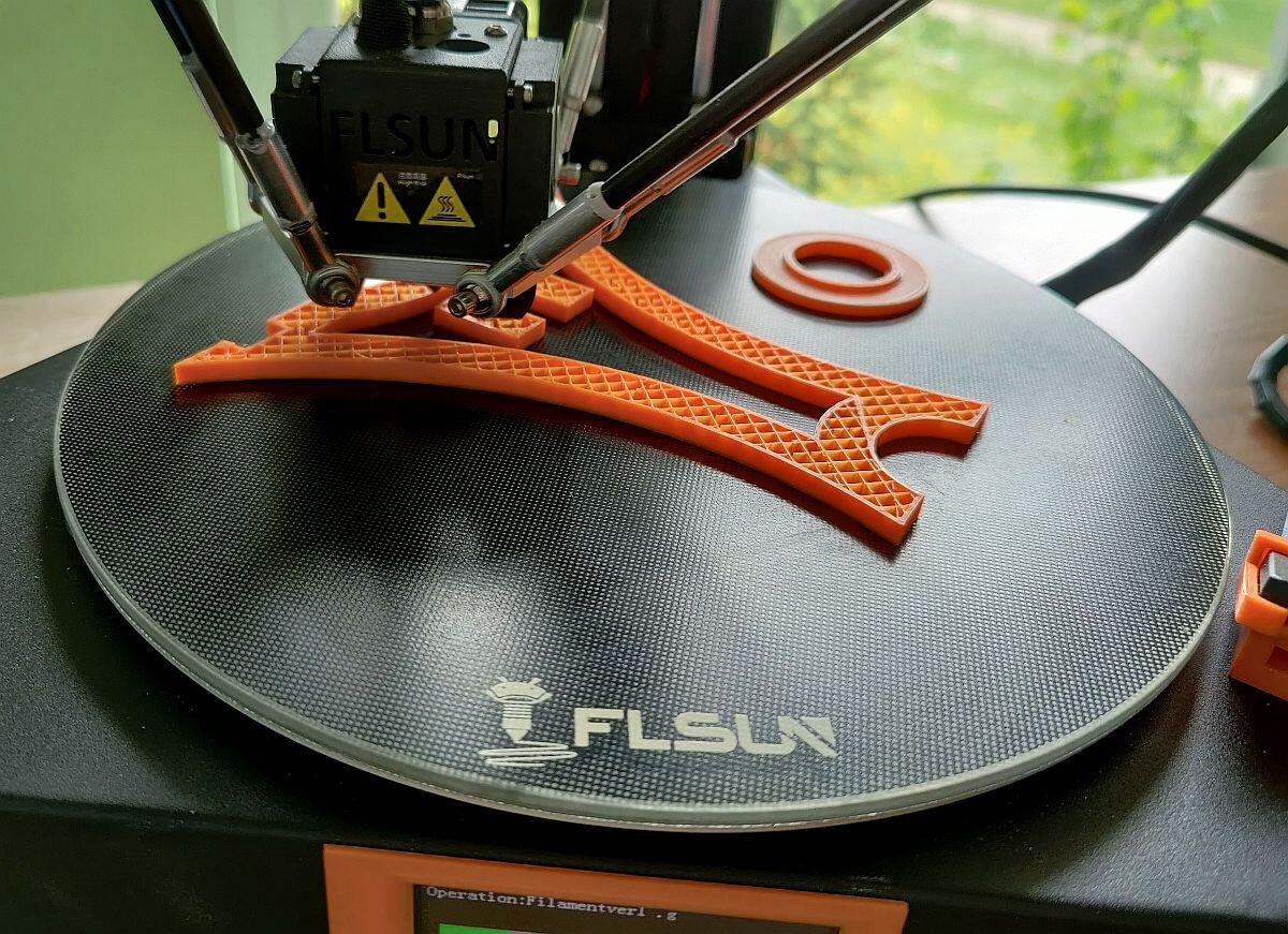 Deshalb musste eine neue gesucht werden. Hier wurde ich fündig. Er wurde ratzfatz gedruckt und ich benötigte auch nur die eigentliche Achse. Meine schon vorhandenen Muttern haben gepasst. Fertig. Oh und BTW: Natürlich wieder auf meinem orangen PLA Filament gedruckt. 200 Grad Nozzle und 60 Grad Bettchen.