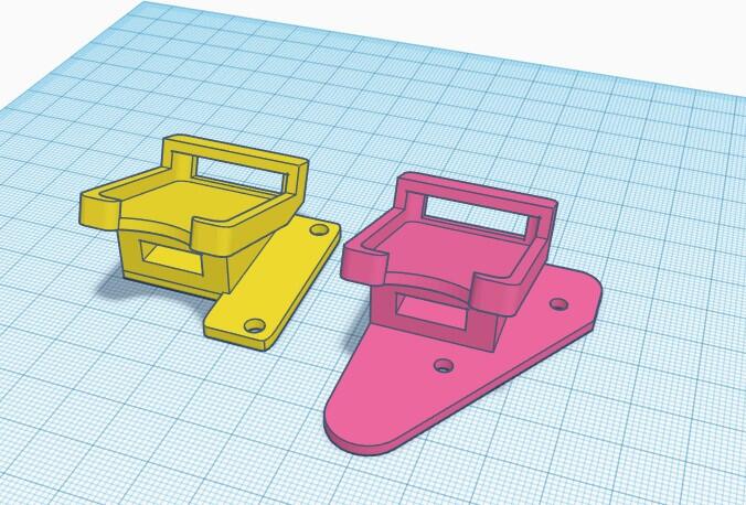 Die rosa Variante war für einen anderen Drucker. Als kleines Gimmick gab es noch unterhalb des MicroSD-Slots einen Einschub, um den USB-Kartenleser direkt noch gleich mit an derselben Stelle bunkern zu können. Also habe ich links in Gelb noch die Halterung umgebastelt und ausgedruckt.