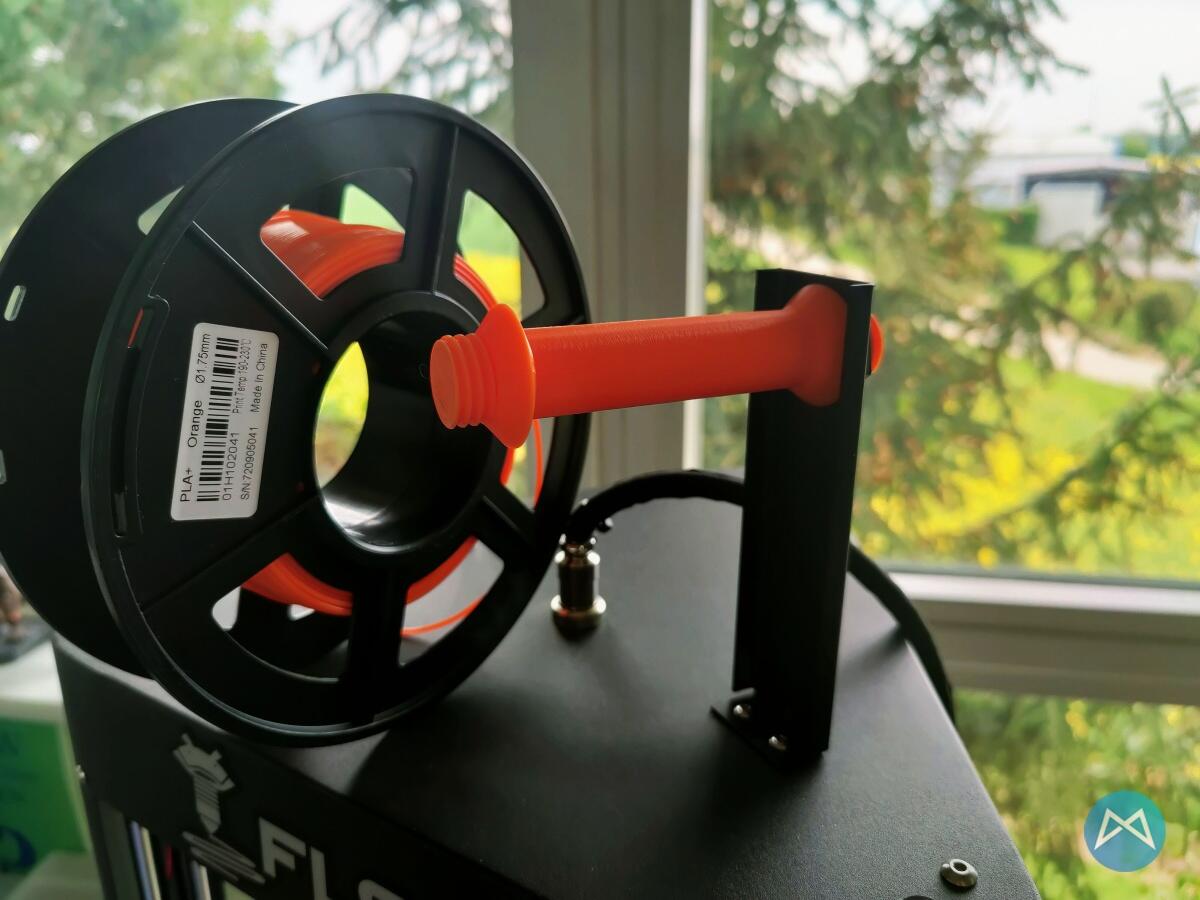 Mit dem Filamentrollen-Halter vom letzten Roundup war ich auch nur halbwegs zufrieden. Die Rollen liefen zwar prima, aber weil das ganze Konzept einfach nicht miteinander verbunden ist, fiel mir dann doch mal eine Rolle vom Drucker und anschließend vom Tisch und zerbrach.