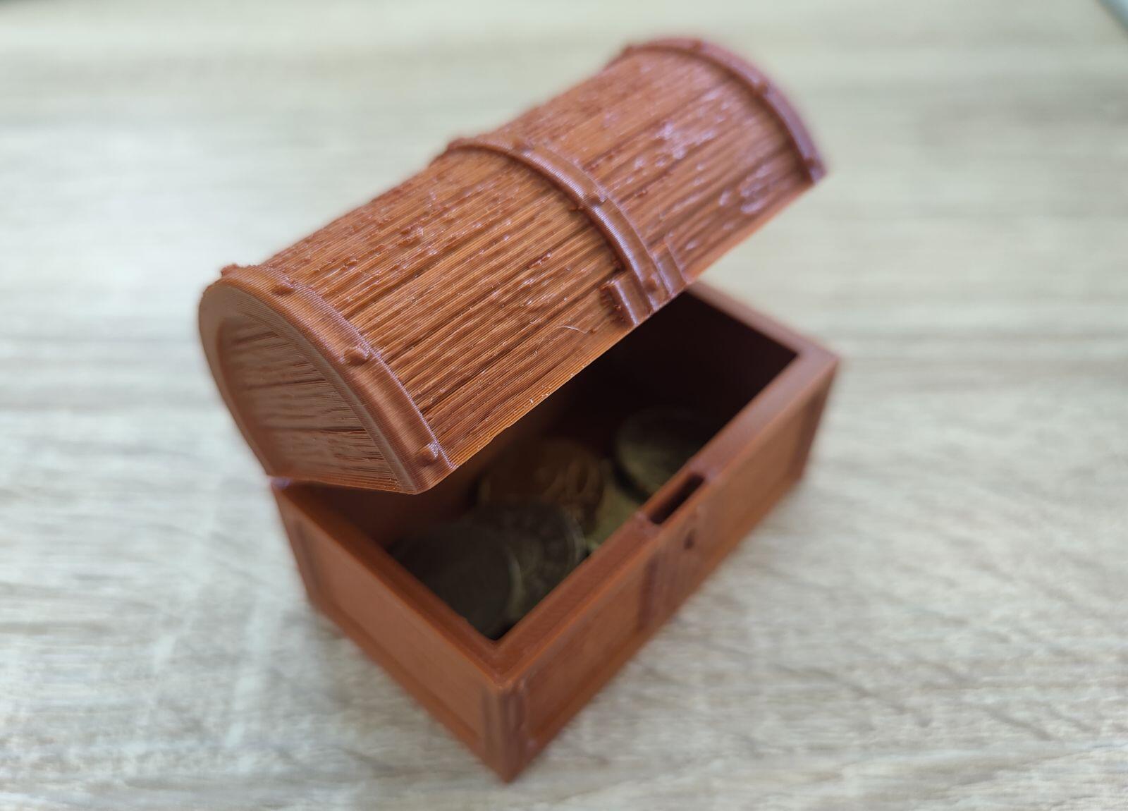 Nächstes Objekt im Bunde war eine kleine Schatztruhe. Je nach Geduld kann man die Truhe sogar mit einem Schlüssel und funktionierenden Schloss drucken. Mir persönlich hat die Truhe an sich gereicht. Sie soll lediglich ein wenig Münzgeld aufbewahren, bis ich es wieder ausgebe oder zur Bank bringe.