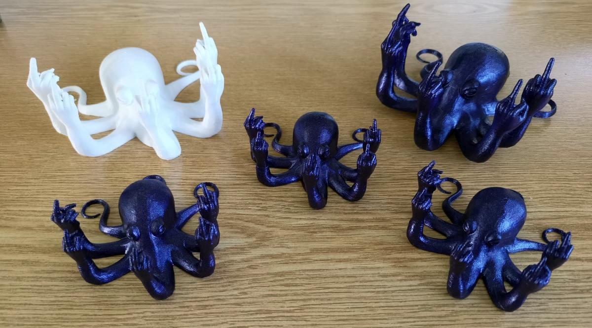 Die letzte Woche stand fast ganz im Zeichen des zuletzt erwähnten #Fucktopus. Mit diesem Ding könnte man sich vermutlich selbständig machen. Leider fehlt mir die Zeit, um all die gewünschten Versionen zu drucken und zu lackieren, nach denen ich via Twitter & Co. gefragt wurde.