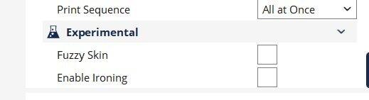 Dabei fährt der Drucker die äußersten Bahnen ruckelig ab und macht einen Look ähnlich Microfaser. Die normal sichtbaren Linien der einzelnen gedruckten Bahnen verschwinden dabei fast komplett. Ironing bedeutet, dass der Drucker die letzten Bahnen mit zu geringem Abstand noch einmal abfährt und diese dabei mit der Druckerspitze glättet.