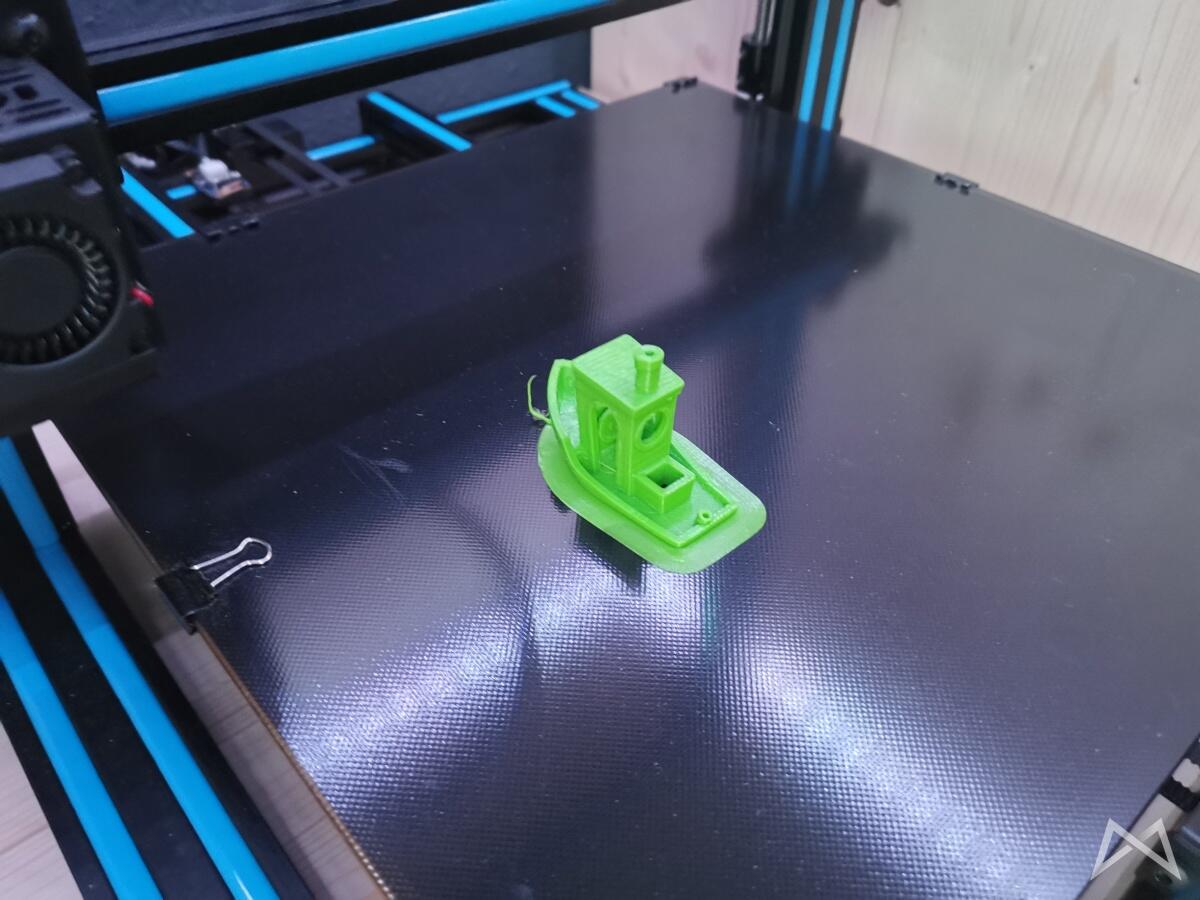 Die Druckplatte des A30 gefällt mir hier auf jeden Fall sehr gut. Bei heißem Bett hält das PET-G suuuper fest. Kein Warping zu sehen – nichts. Wenn die Platte dann nach dem Druck abgekühlt ist, fällt das Objekt schon um, wenn man es nur mit der Fingerspitze berührt. Tolles Druckbett! So muss das sein. Mehr zum Geeetech A30 dann im nächsten Roundup.