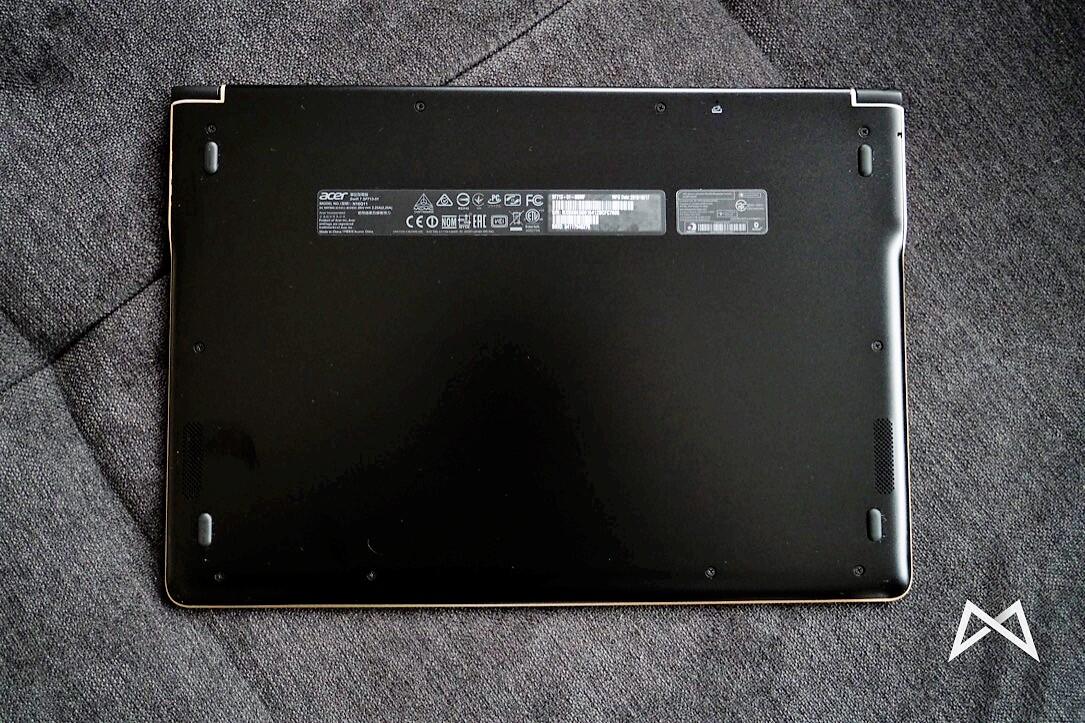 Die Unterseite besitzt keinerlei extra Klappen oder Fächer, um etwa den RAM oder die Festplatte einfach wechseln zu können. Wenn, dann muss der Swift 7 also wie früher mit 10 Schrauben aufgeschraubt werden.