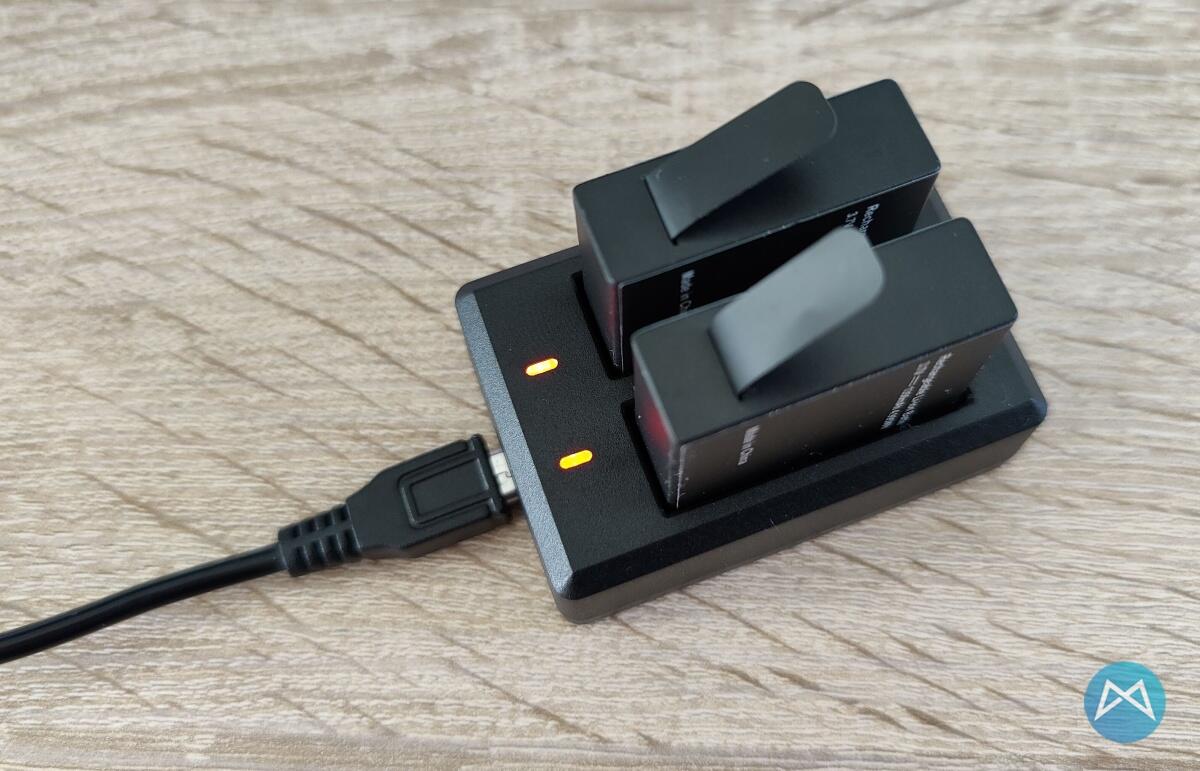 Was mir auch gefällt ist die Ladestation für die beiden beiliegenden Akkus. Auch hier genügt ein USB-Anschluss und schon können die Akkus via MicroUSB Netzteil (nicht im Lieferumfang) geladen werden.