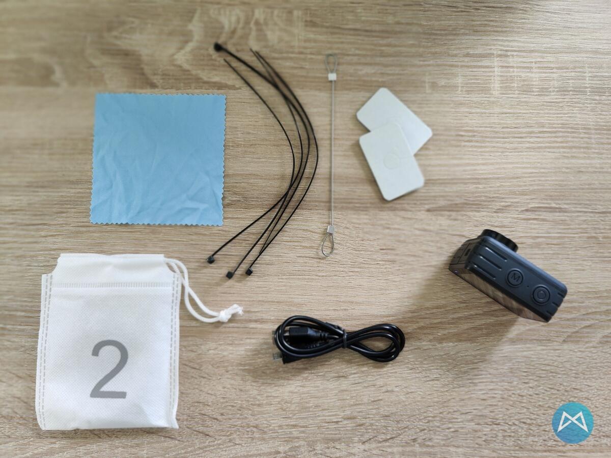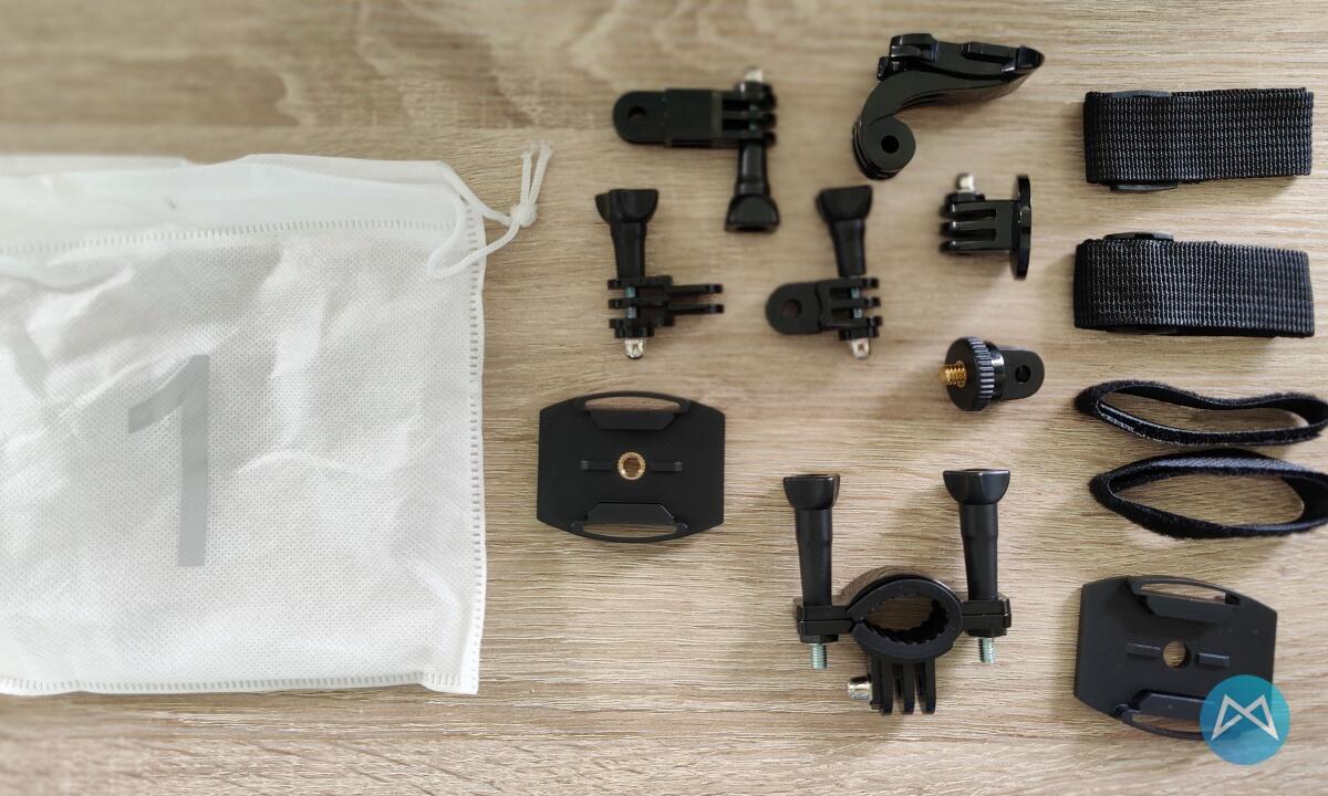 Dazu ist natürlich die Kamera selbst, ein Quick Start Guide, ein Unterwassercase, Kabelbinder, Mikrofasertuch, Fernbedienung mit Armband und viele kleine Halterungen und Befestigungsmöglichkeiten im Lieferumfang enthalten. Die Teile warten auf den Käufer hübsch verpackt in kleinen durchnummerierten Tüten in der Packung.