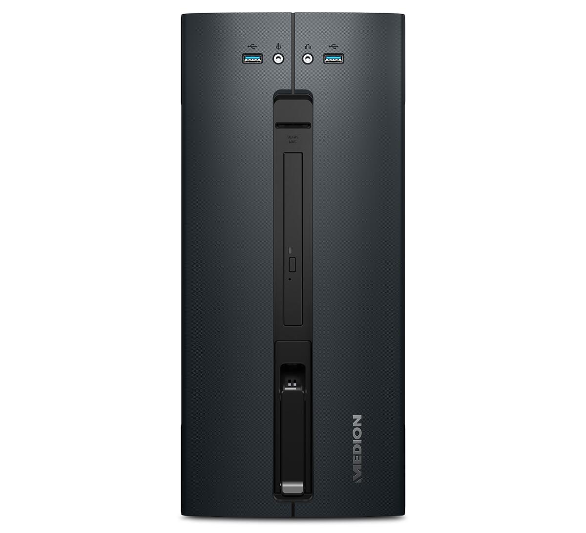 Als Besonderheit kann der Medion Akoya P66088 einen Hot-Swap-Festplattenwechselrahmen auf der Front vorweisen. Zudem sitzt vorne auch noch ein DVD-Brenner und der aktuelle WLAN 6-Standard wird unterstützt.