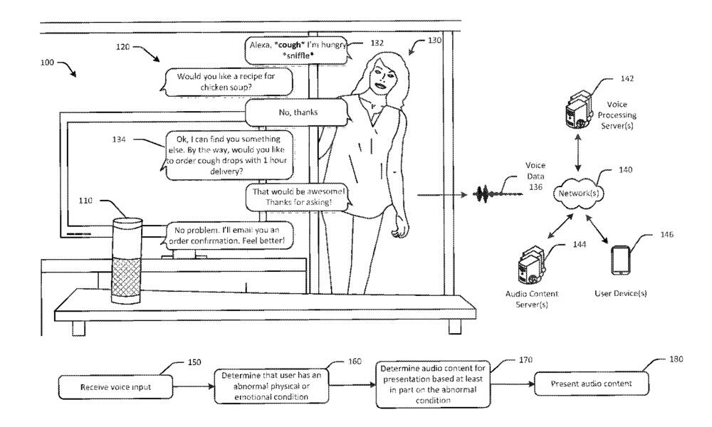 Das Patent sieht wohl auch vor, dass nicht nur Dinge wie Husten, sondern auch Stress und Depression in der Stimme erkannt werden. Ein in den eigenen vier Wänden geschwächter Nutzer scheint eine Zielgruppe für Amazon zu sein.