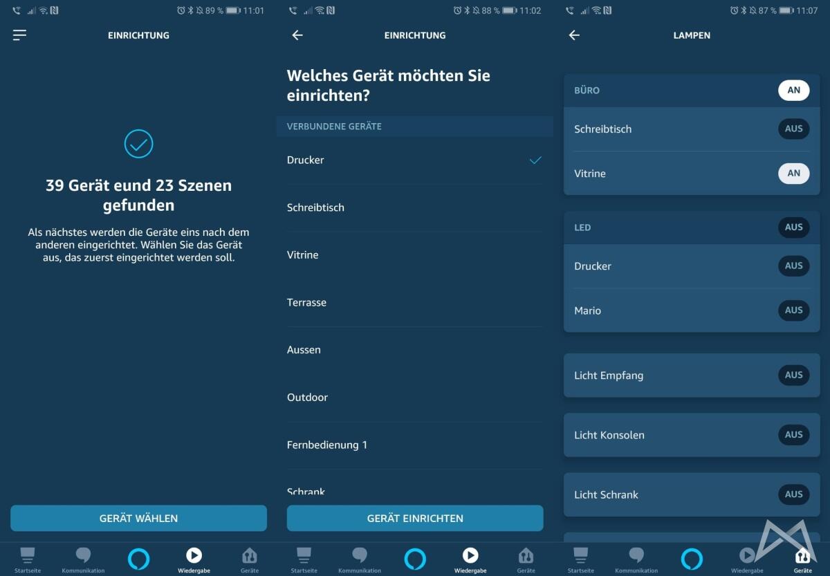 Die Einrichtung geht wieder wie immer recht einfach vonstatten. Ihr müsst lediglich den Skill aktivieren und mit eurem Devolo-Konto verknüpfen. Danach werden die vorhandenen Geräte gesucht. Nicht erschrecken – hier werden einige Dinge gefunden, da auch Szenen und Regeln erkannt werden.