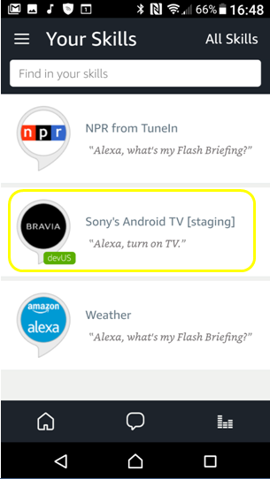 Erfreulich ist, dass es sich bei dem Skill von Sony um einen Smart Home-Skill handelt. Das bedeutet, dass der Skill nach Aktivierung das Fernsehgerät als Smart Home-Gerät in Alexa platziert und der Nutzer die Befehle dann ohne zusätzlichen Skill-Namen geben kann.
