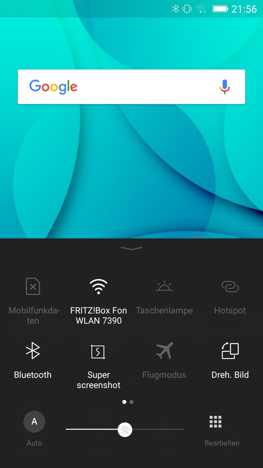 Sind die Quick Settings bei jedem normalen Android-Smartphone beispielsweise in der Benachrichtigungsleiste zu finden, kommt das Allview X4 Soul Xtreme mit einer Art Control Center daher. Wie bei Apple kann dieses mit einem Swipe von unten nach oben geöffnet werden, hat abgesehen von den Quick Settings aber keine weiteren Funktionen integriert.