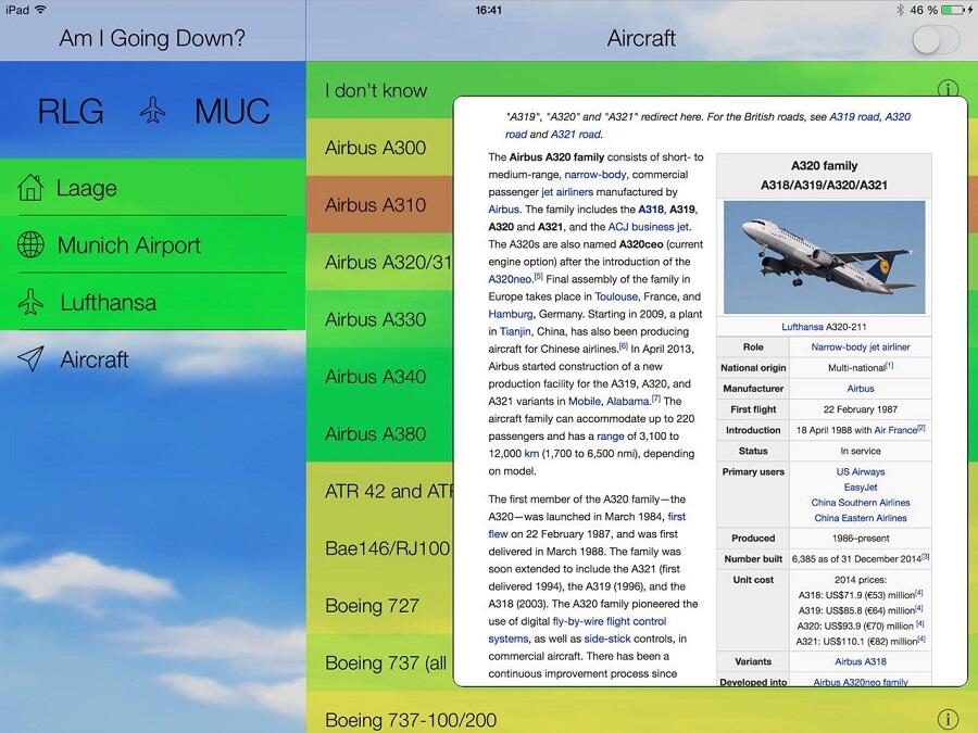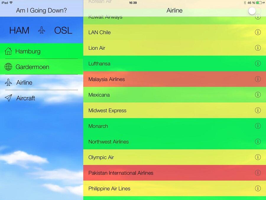Die iOS-App „Am I Going Down?“ soll über die Absturzgefahr von Zivilflugzeugen informieren und so Menschen die Flugangst nehmen.