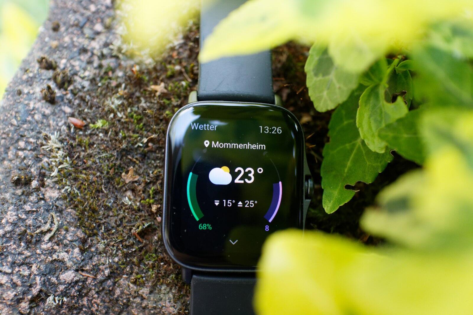 - Wird die Amazfit GTS 2e regelmäßig mit dem Smartphone synchronisiert, kann sie in einem eigenen Widget die Wettervorhersage darstellen. In meinen Augen eine sehr praktische Funktion, die ich recht häufig eingesetzt habe.