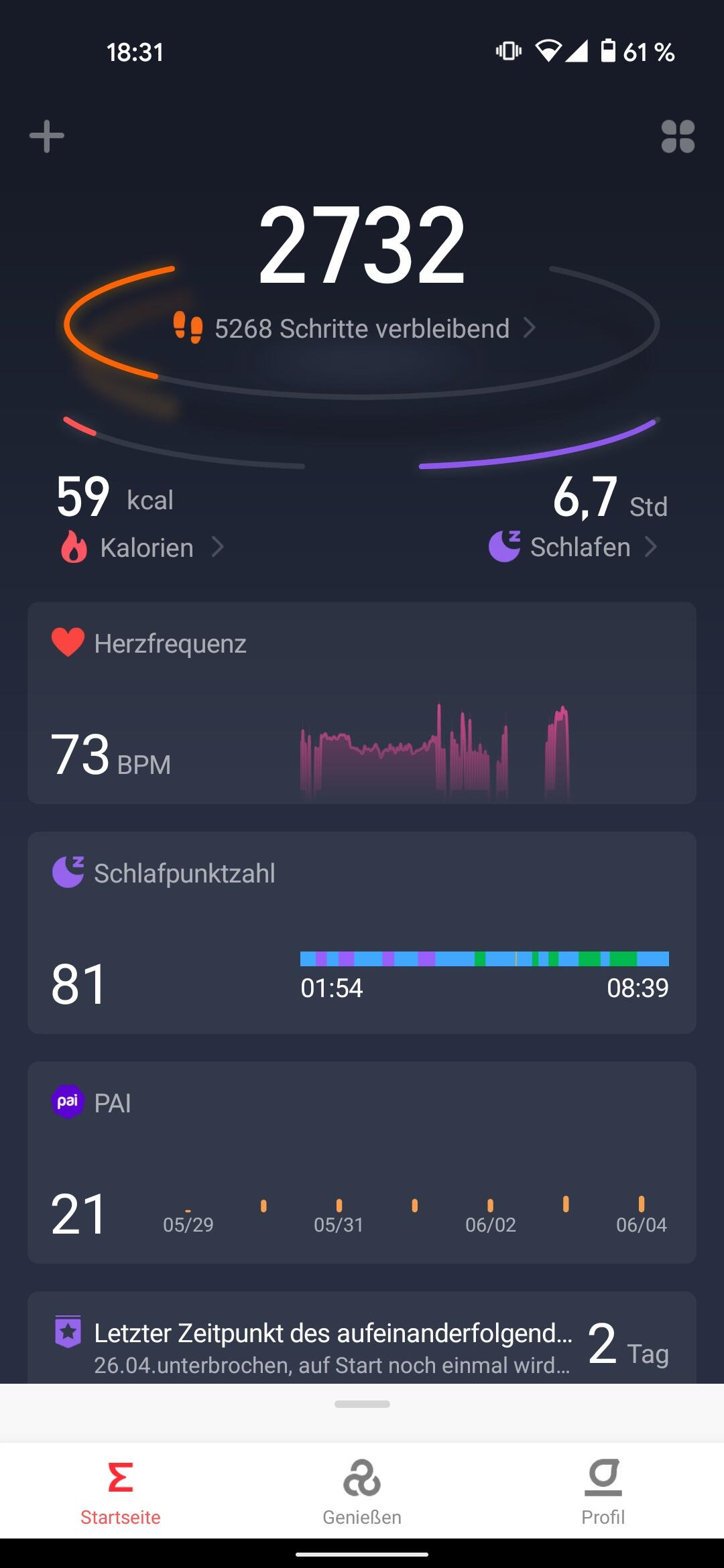 Zu guter Letzt überzeugt neben dem eigentlichen Smartwatch-OS auch die Zepp-App für das Smartphone mit einer einfachen Bedienung und hübschen Aufmachung. Aufgezeichnete Daten werden hier übersichtlich dargestellt und können unter anderem mit Google Fit synchronisiert werden. Lediglich die Übersetzung ins Deutsche könnte an einigen Stellen noch ein wenig verbessert werden.