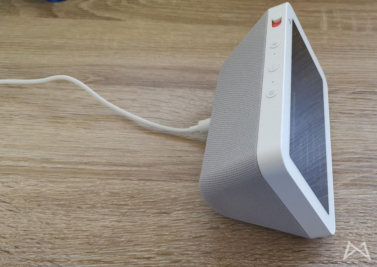 Die Verarbeitung gefällt mir sehr. Das Gehäuse besteht aus weißem oder schwarzem, robustem Netz-Stoff (natürlich über einem festen Gehäuse) und auf der Oberseite finden wir die Tasten zur Steuerung.Sie bieten die Funktionen An/Aus Mikrofon, Lauter, Leiser und den Schieberegler um die Kamera mechanisch zu verdecken. Selbstverständlich kann der Echo Show 5 auch über den Touchscreen und via Sprache/Alexa gesteuert werden.