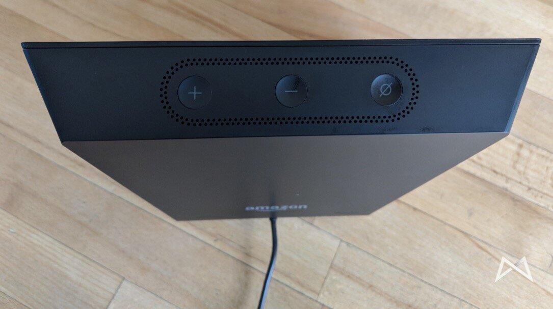 Der Show selbst steht dabei sehr sicher auf seiner gummierten, rutschfesten Unterseite. Auf der Oberseite befinden sich der Mute-Knopf und die beiden Lautstärke-Buttons. Das war es auch schon. Generell lässt sich der Show mittels Sprache, Touchscreen und der drei Tasten bedienen.