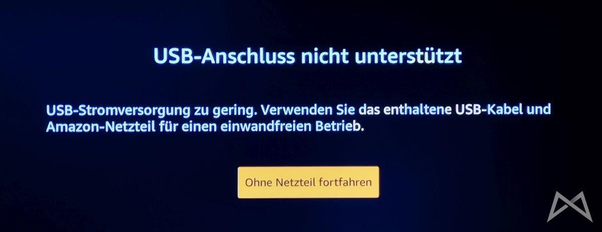 In einem Anflug jugendlichen Leichtsinns habe ich natürlich trotzdem probiert, ob mein 500 mAh USB-Anschluss vom TV genügen würde. Aber der Stick war zu Schlau für mich. :)