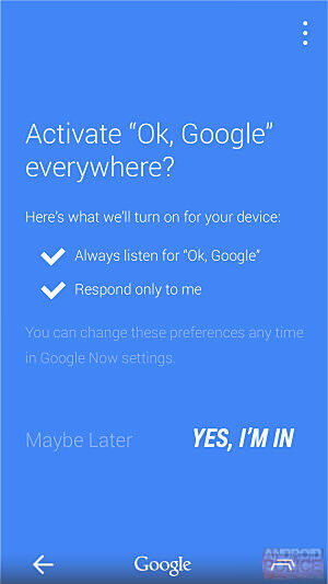 Stimmen die Informationen, die Android Police erhalten hat, plant Google, künftige Versionen von Android stärker auf Google Now auszurichten. So soll die Sprachsuche nicht mehr nur in der Search-App, sondern stattdessen auch in weiteren Google-Apps erreichbar sein. In der Galerie könnte man dann über das Hotword „Ok, Google“ z.B. das Teilen von Bildern oder das Öffnen des Editors per Sprachbefehl auslösen.