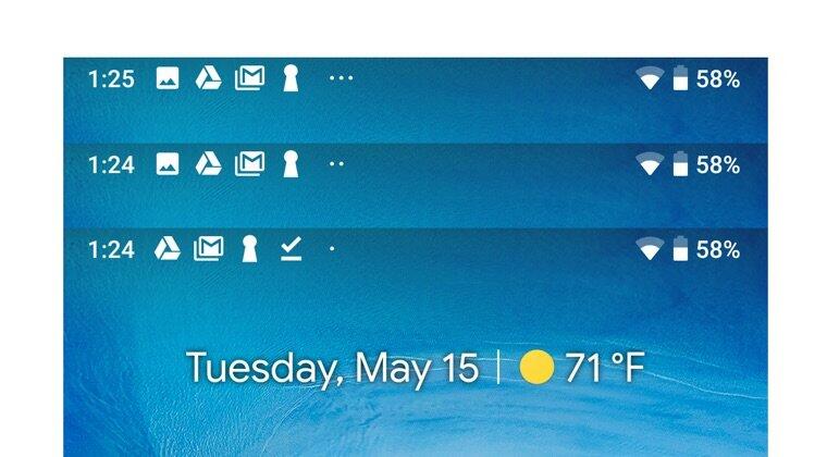 In der aktuellen Beta von Android P werden nur vier Icons in der Statusleiste oben angezeigt. Sind mehr Benachrichtigungen da, dann werden Punkte angezeigt.