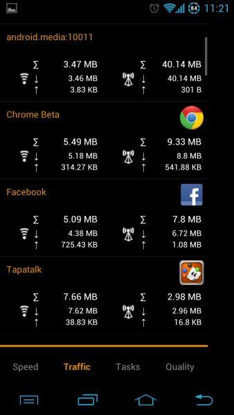 - Zählt die übertragene Datenmenge bei WLAN- und Mobilfunkverbindung, getrennt für Up- und Download