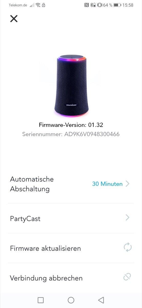 Oder es wird die Soundcore-App heruntergeladen und den Anweisungen auf dem Bildschirm gefolgt. Eine Account-Anmeldung kann übersprungen werden und dann sucht die App nach Auswahl des zu suchenden Speakers auch schon den Lautsprecher.