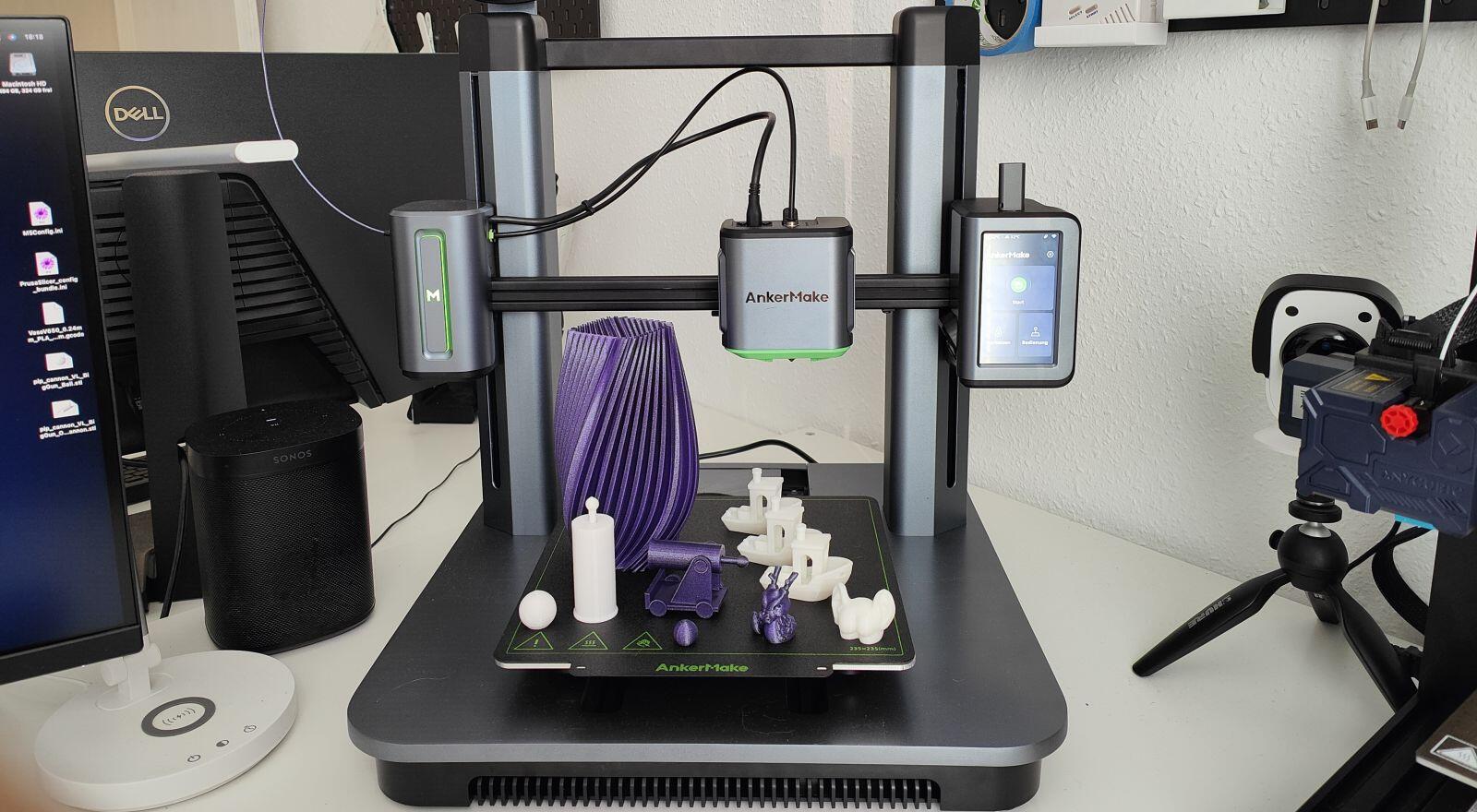 Die Steuerung über den Touchscreen ist hier super gelöst und der Slicer Luban ist auch sehr schick, wenn auch bei weitem nicht so umfangreich wie der Bambu Slicer. Von der Geräuschkulisse würde ich den J1 als den leisesten dieser drei hier abgehandelten Drucker einstufen. Nachteil des IDEX-Systems und dem Platz, den der zweite Druckkopf benötigt ist der, dass trotz der Größe des Druckers das Druckvolumen verglichen mit dem Ankermake M5 und dem Bambulab P1P nicht ganz so groß ist.