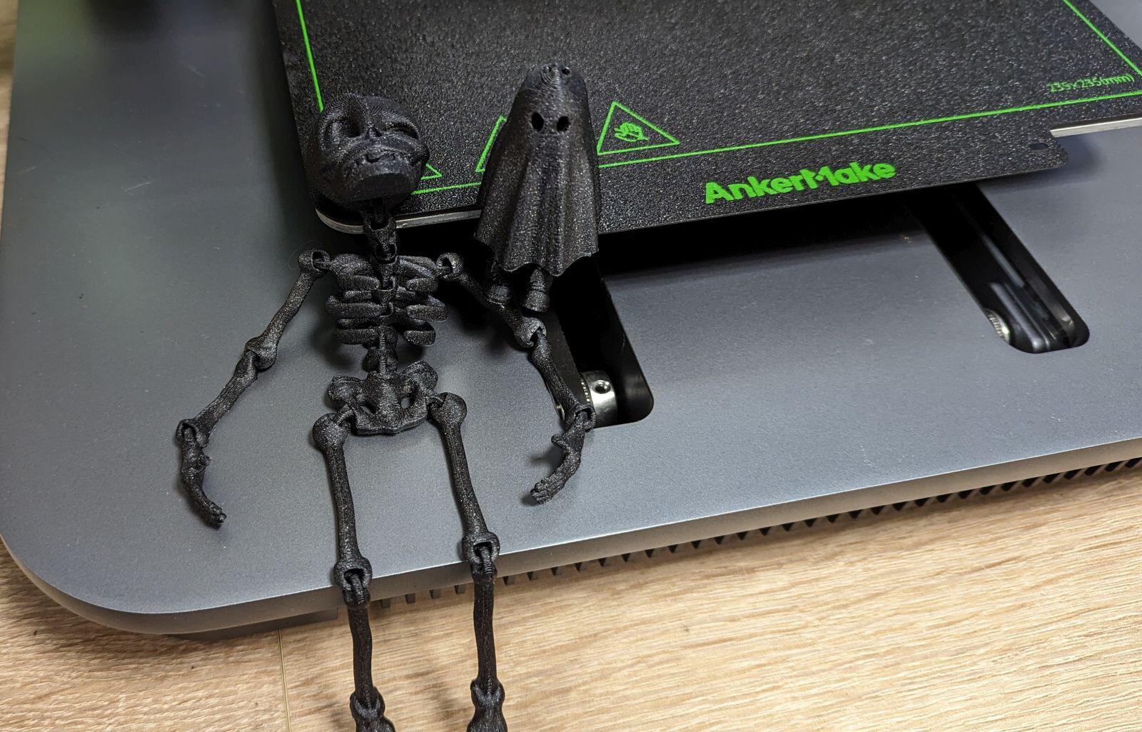 Der Drucker ist aber natürlich absolut nicht perfekt und druckt jeden Druck fehlerfrei. So etwas wirst du wohl nirgends finden. Auch auf dem M5 habe ich schon Spaghetti gedruckt. Ein articulated Scelet für Halloween klappte beispielsweise fast komplett aber am Schluss hat er mir die Füße abgerissen. 🙈