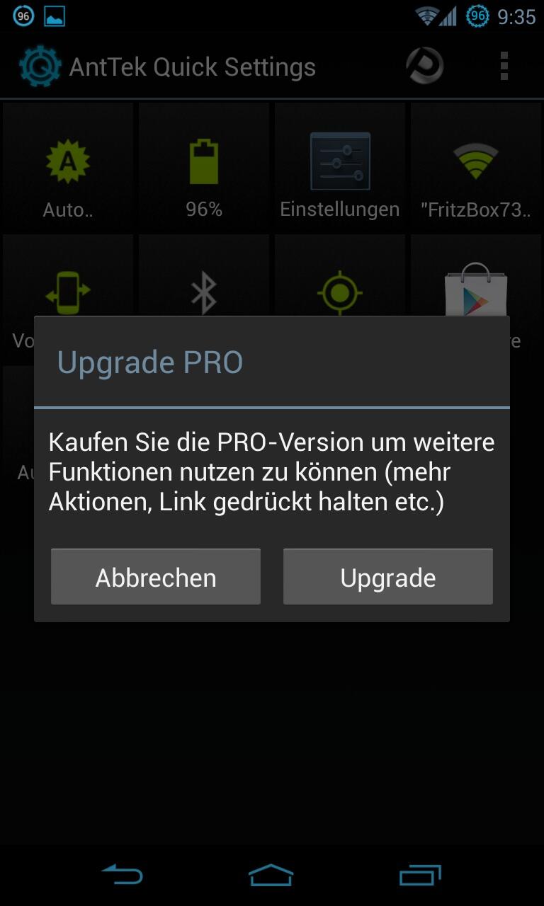Für noch größeren Funktions-Umfang wie beispielsweise langes drücken auf das WiFi-Netz = WiFi-Einstellungen muss eine Vollversion erworben werden. Dennoch genügt auch der Grundumfang schon, um die Bedienung des Systems ohne Root um einiges zu erleichtern. Wie gefällt euch AntTeck Quicksettings?