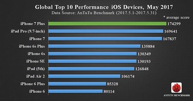Natürlich gibt es auch eine Statistik, bei der nicht nur die Androiden, sondern auch die iOS-Geräte mit aufgelistet sind. Hier wurde nun anscheinend auch das iPhone 7 Plus vom HTC U11 mit dem neuen Snapdragon 835 Prozessor von der Spitze verdrängt. Mal sehen, mit welcher Punktzahl uns da das kommende iPhone dann vom Hocker hauen wird.