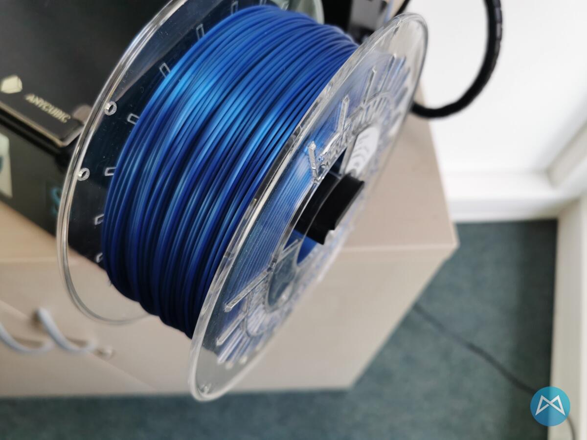 Nachdem man die Geschwindigkeiten noch angepasst hat klappt alles gut. Das dunkelblaue Silky Filament hatte Warping ohne Ende. Mit den üblichen Methoden habe ich das nur begrenzt beheben können. Dieses Problem hatte ich aber weder beim weißen noch beim hellblauen Filament im Test. Man sieht also sehr schön, dass es manchmal nicht am Drucker, sondern am Filament liegt.