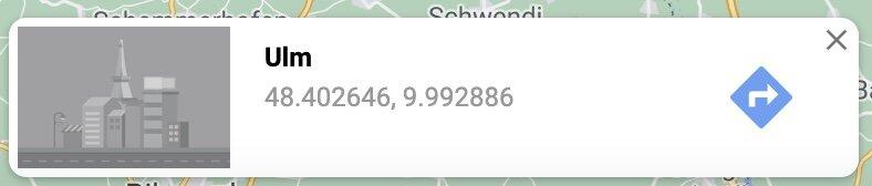 Diese Daten findet ihr am einfachsten in Google Maps. Dort sucht ihr eure Stadt und drückt mit der rechten Maustaste auf „Was ist hier?“. Das folgende Fenster zeigt die Koordinaten an, die ihr im Corona Widget eintragen müsst.