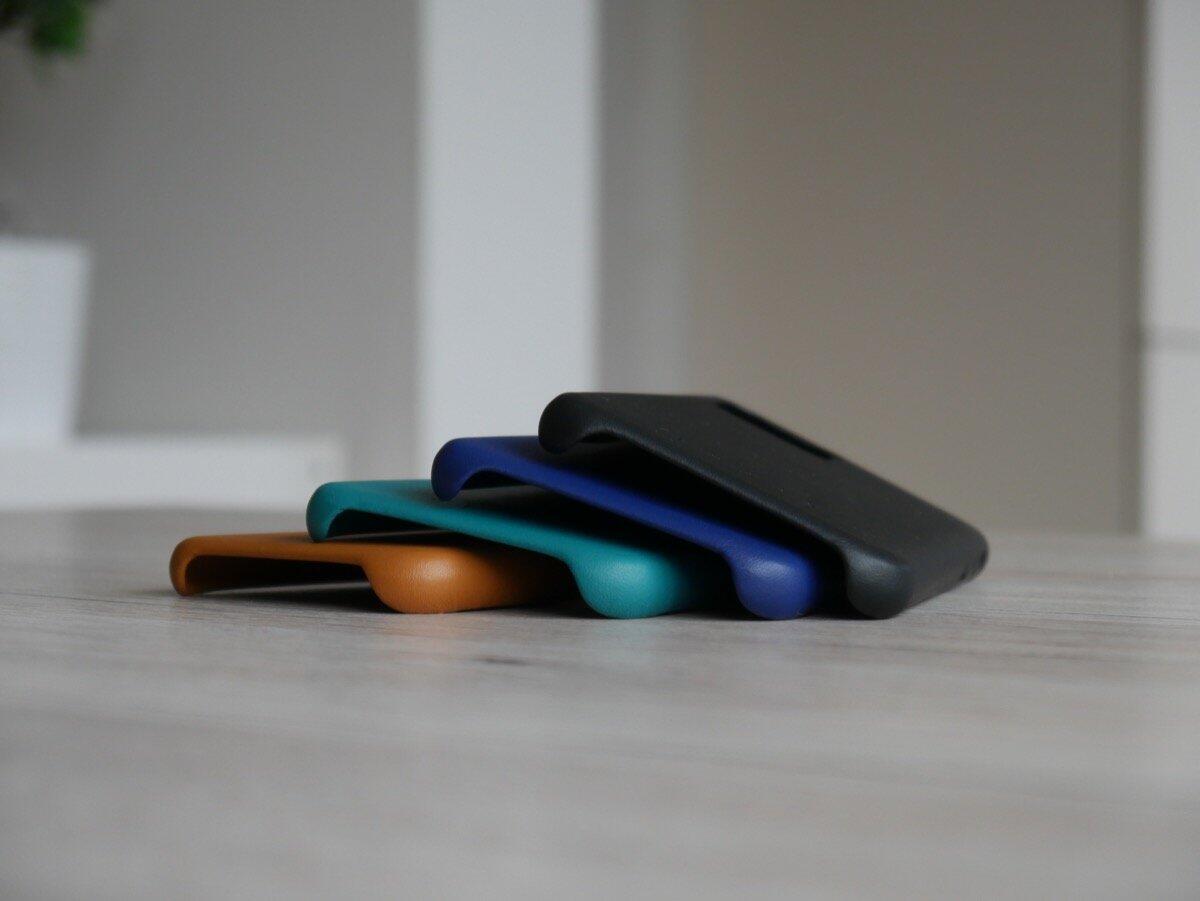 Die Lederhülle gibt es in vier Farben, neben dem klassischen Schwarz und Braun sind in diesem Jahr ein dunkles Blau und Alpingrün dabei. Außerdem gibt es zwei Versionen, einmal mit Wallet-Option für eine Karte hinten und ohne.