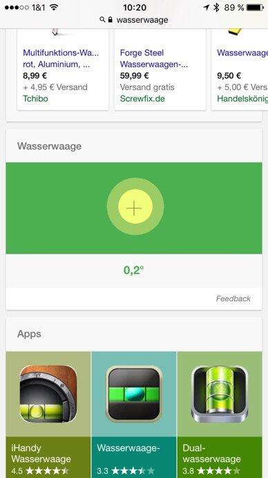 Der zweite Punkt ist die im iPhone enthaltene Wasserwaage, die sich in der Kompass-App versteckt und erstaunlich gut funktioniert. Einfach einmal nach links wischen, um die Wasserwaage rechts anzuzeigen und los geht es. Hier sei zusätzlich auch nochmal Googles Online-Wasserwaage angemerkt. Surft mit einem Smartphone (natürlich auch Android) einfach diese Google-Suche an und ihr solltet diese nutzen können.