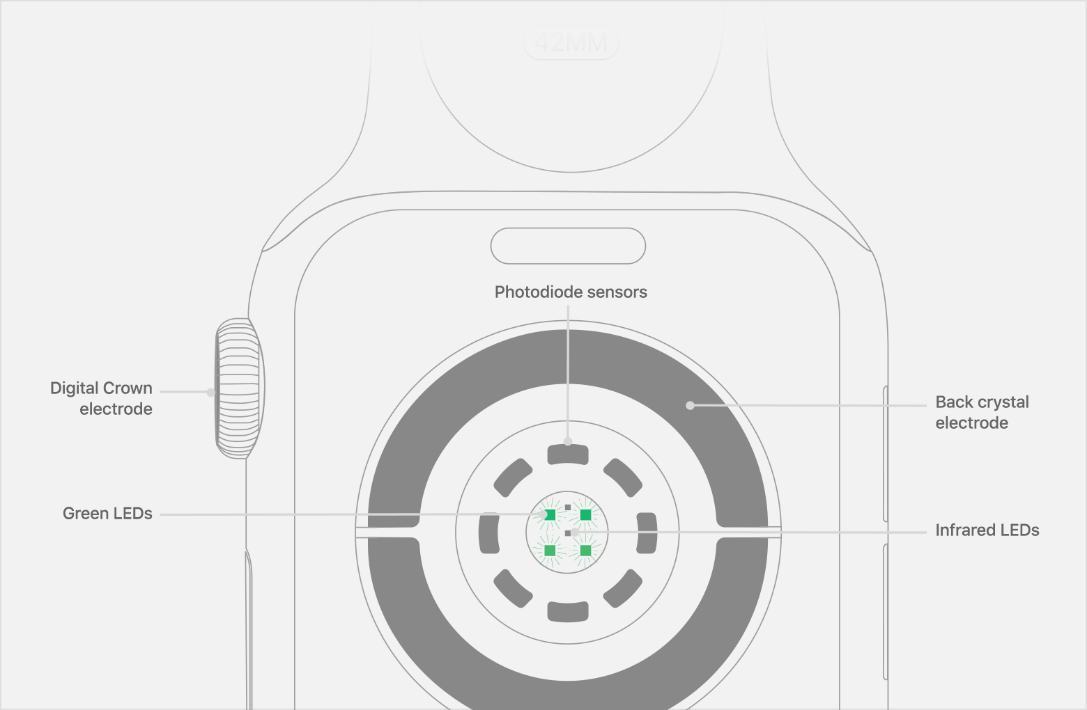 -->Die Apple Watch Series 4 verfügt auch über integrierte Elektroden in der Digital Crown und Rückseite der Watch, die bei Verwendung mit der Herzfrequenz-App oder EKG-App die elektrischen Signale Ihres Herzens messen können. Wenn Sie Ihren Finger auf die Digital Crown legen, wird der Stromkreis zwischen Ihrem Herzen und beiden Armen geschlossen. So können die elektrischen Impulse in Ihrer Brust erfasst werden.